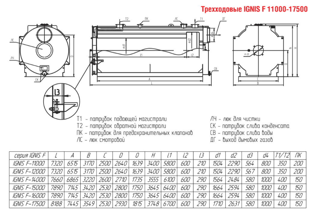 Технические характеристики водогрейного трёхходового котла ARCUS IGNIS F-11000