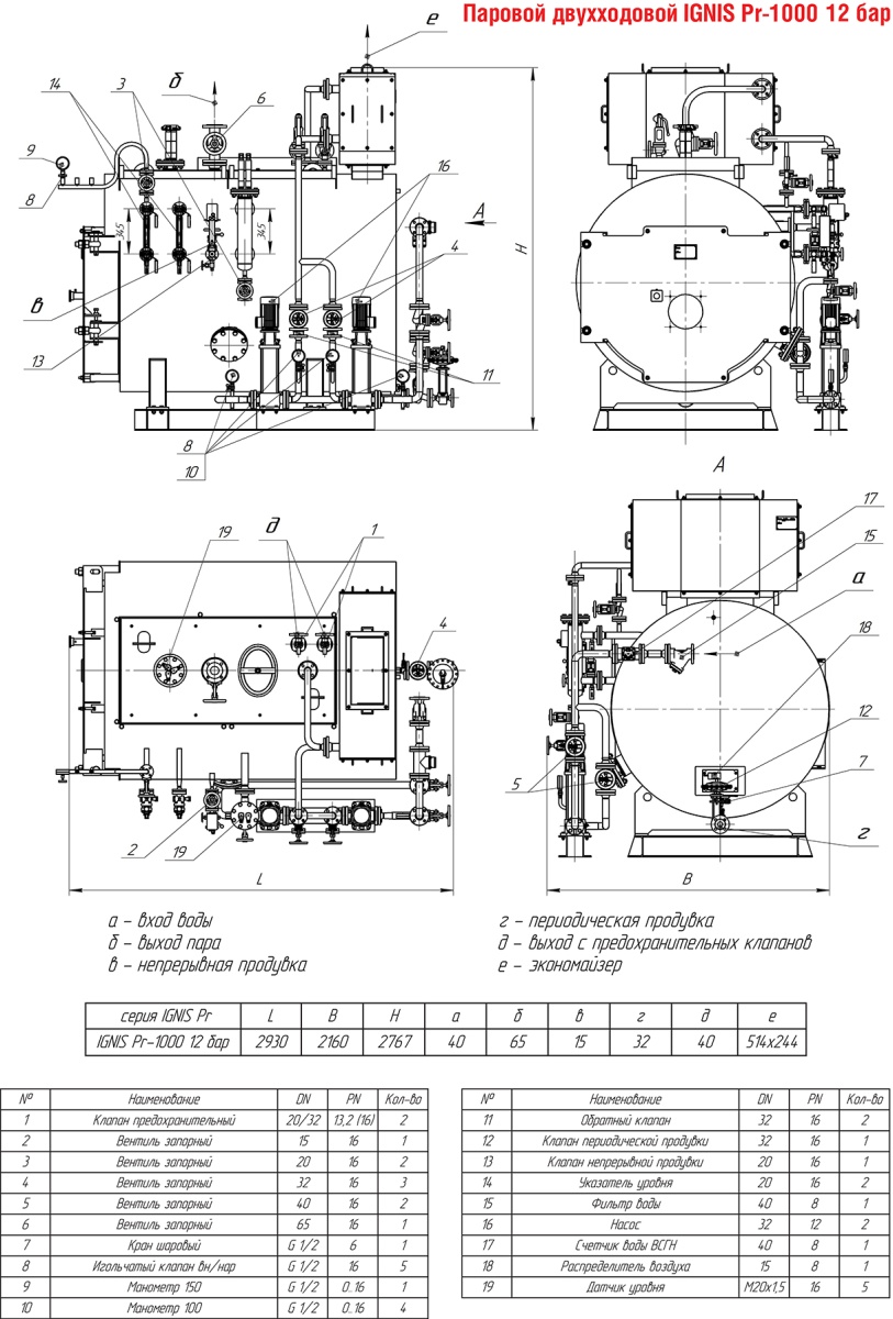 Технические характеристики парового двухходового котла ARCUS IGNIS Pr-1000