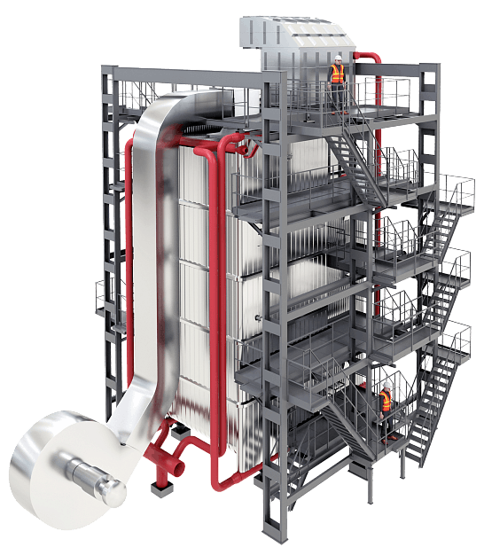 TEMRON Wmax-120 - водотрубные газовые котлы высокой мощности, оборудованные горелками,расположенными на потолке. Имеют высокие экономические и экологические характеристики.