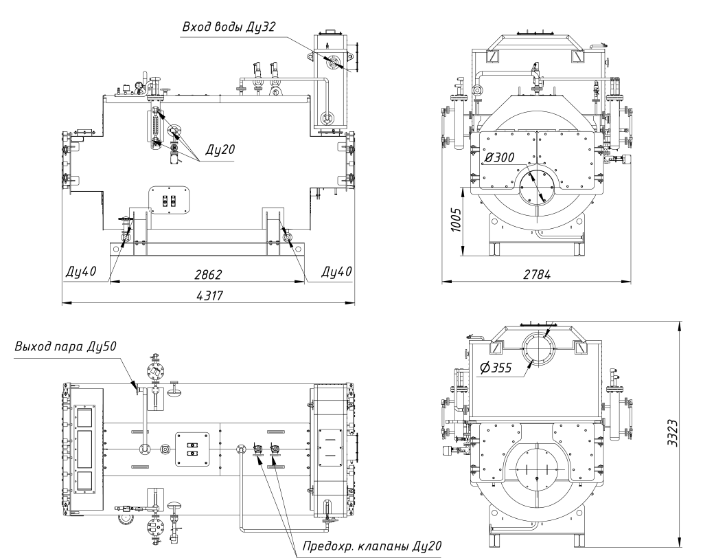 В конструкции котлов применяются отбортованные днища и волнистые жаровые трубы, что гарантирует прочность и долговечность.